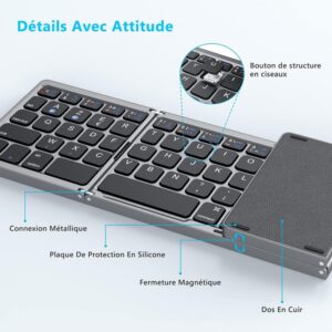 • 【Clavier pliable compact】 Ce clavier Bluetooth peut être plié en trois pour tenir dans votre poche, idéal pour les voyages ou les urgences. Dimensions pliées : 30,4 * 9,8 * 1 cm ; dimensions dépliées : 15,2 * 9,8 * 2 cm.