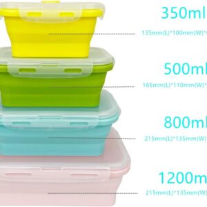 Lot de 4 boîtes de stockage alimentaire en silicone pliables avec couvercles hermétiques pour le camping – Sans BPA, passent au micro-ondes et au congélateur