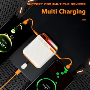 Cette banque d’alimentation offre une double solution de recharge : sans fil pour la simplicité, ou avec fil pour une compatibilité universelle. En plus, sa lumière intégrée ajoute une touche pratique pour les situations de faible luminosité, faisant d’elle un accessoire indispensable.